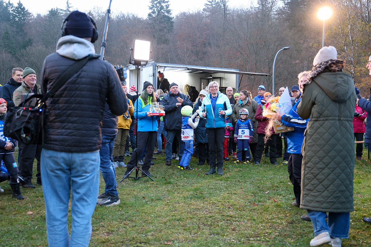Am Freitag, den 7. November war es wieder so weit. Diesmal hatte Conny Schomburg nicht nur ihre Rolle im Kampfrichterbüro im Hintergrund, sondern stand im Scheinwerferlicht im Schanzenauslauf im Mittelpunkt.